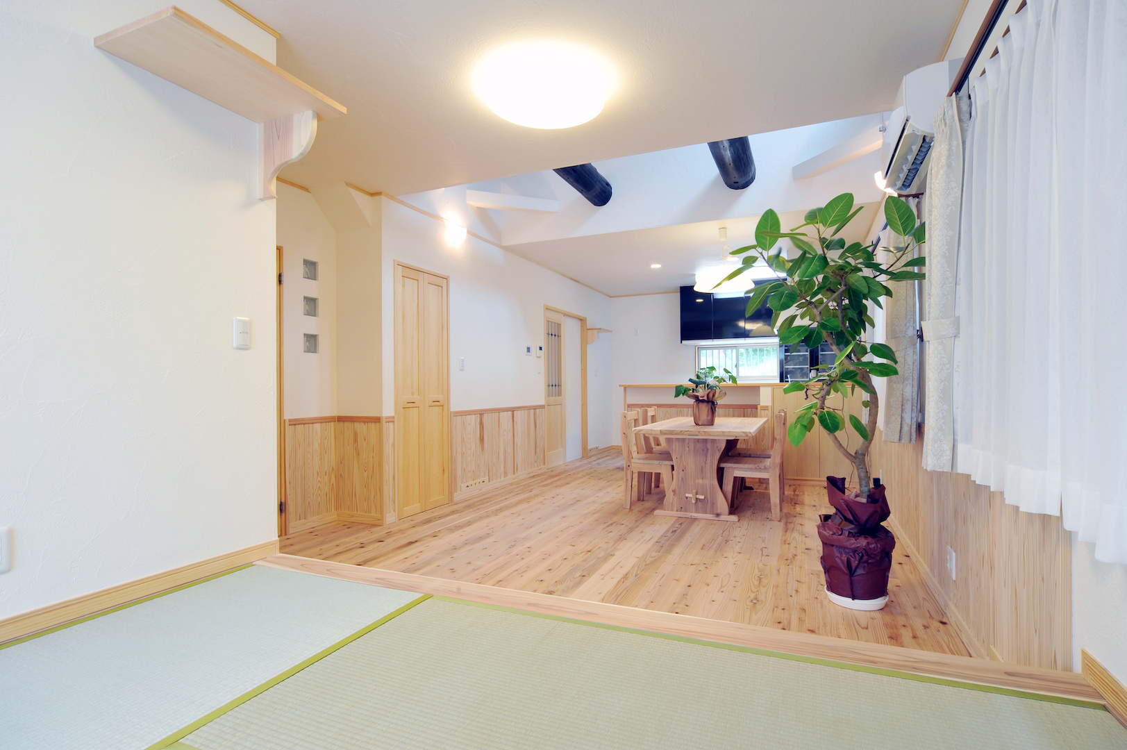 仕切りをなくしてひとつの空間につくり変えることで、親戚や友人が集まってもゆったり過ごせるようになります。