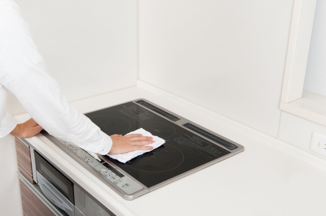 五徳の凹凸が掃除しづらいガスコンロに比べ、IHの天板はフラットな形状のため、汚れをさっと拭き取ることができ、掃除に手間がかかりません。