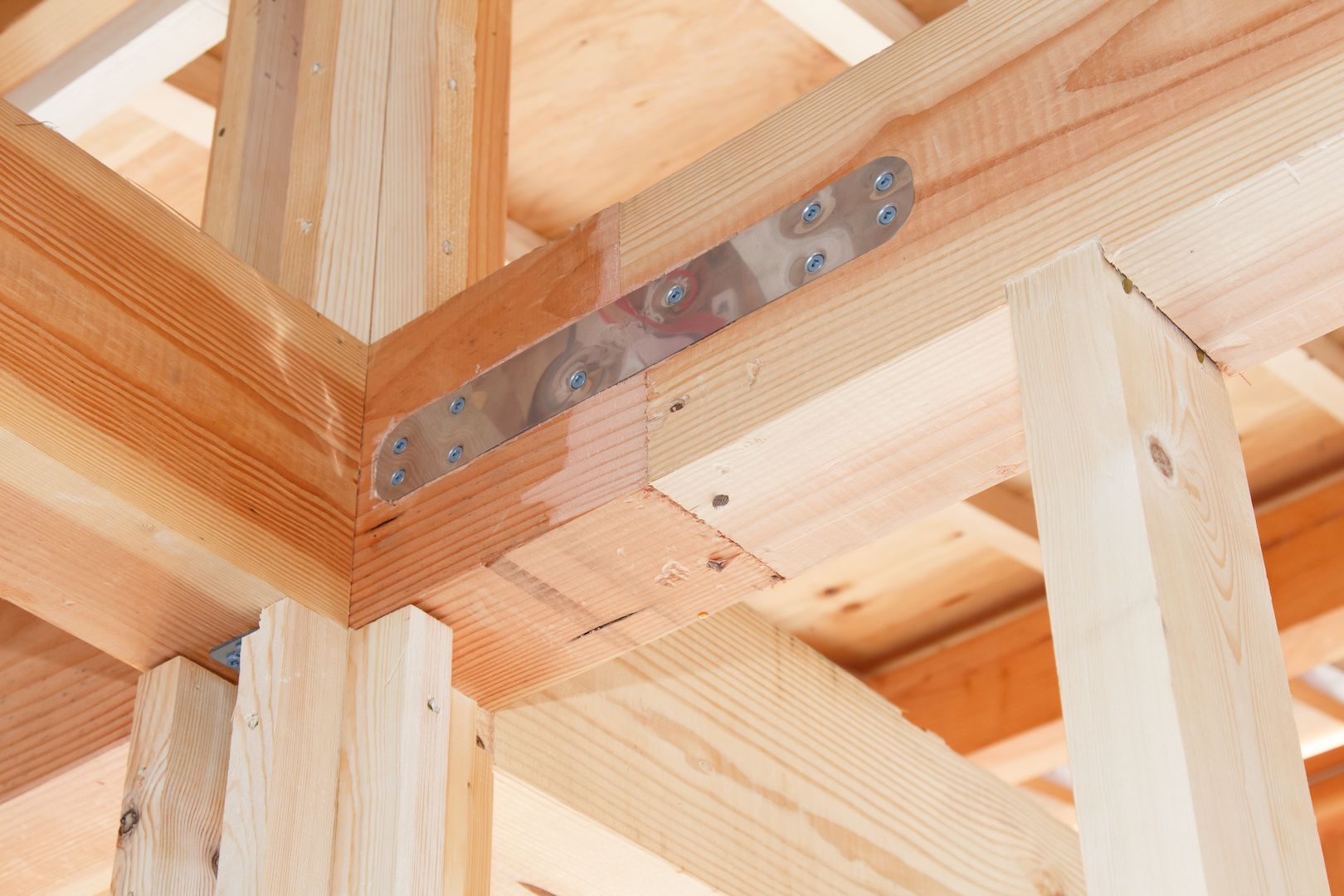 家の柱も、地震に備えて強くすることができます。柱と柱、柱と梁などの接合部を金物で補強したり、古くなって腐った部分を修繕したりするのが基本的なやり方です。