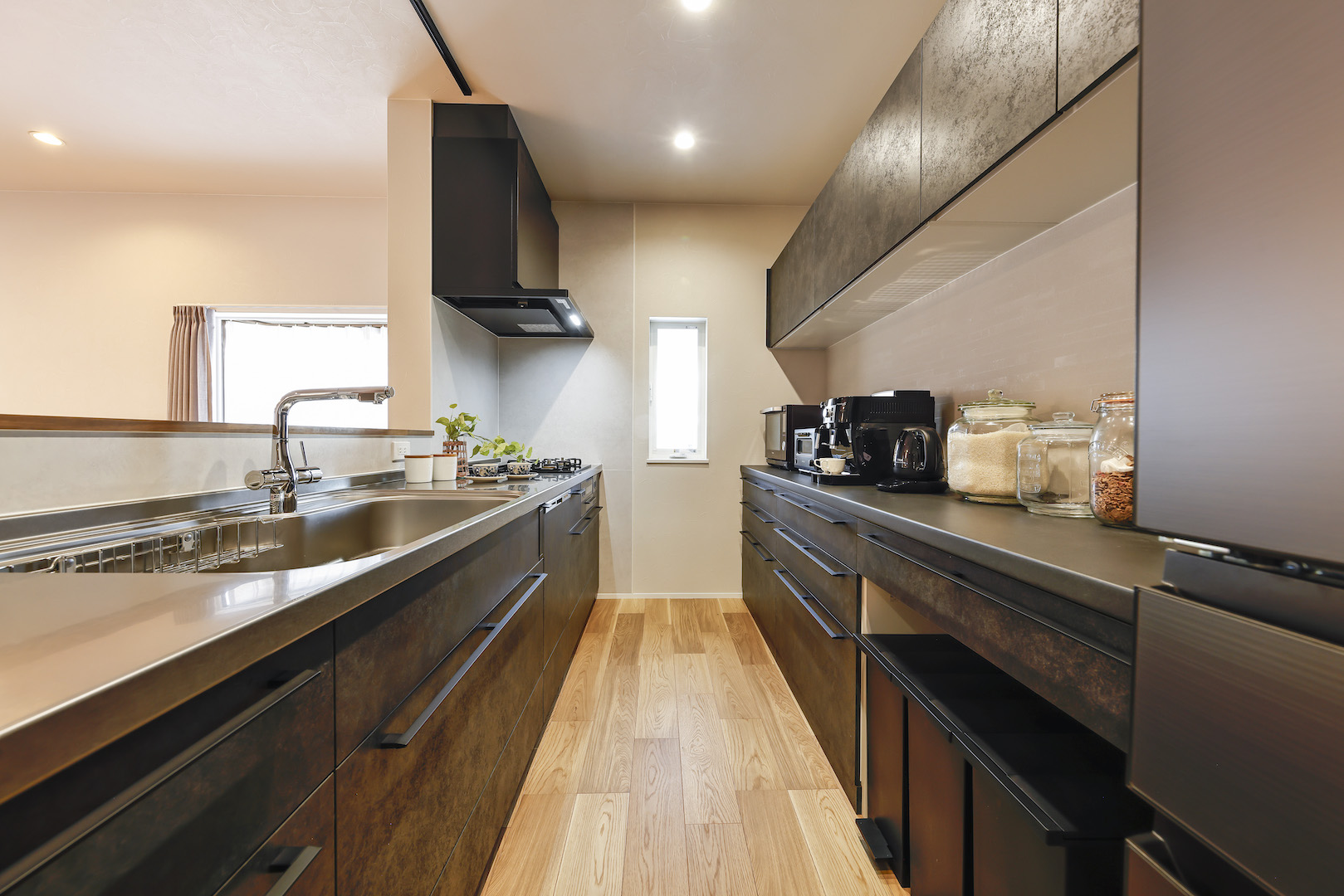 背面には大容量のキャビネットと吊り戸棚を設置し、かつて廊下だったスペースにはパントリーを新設しました。