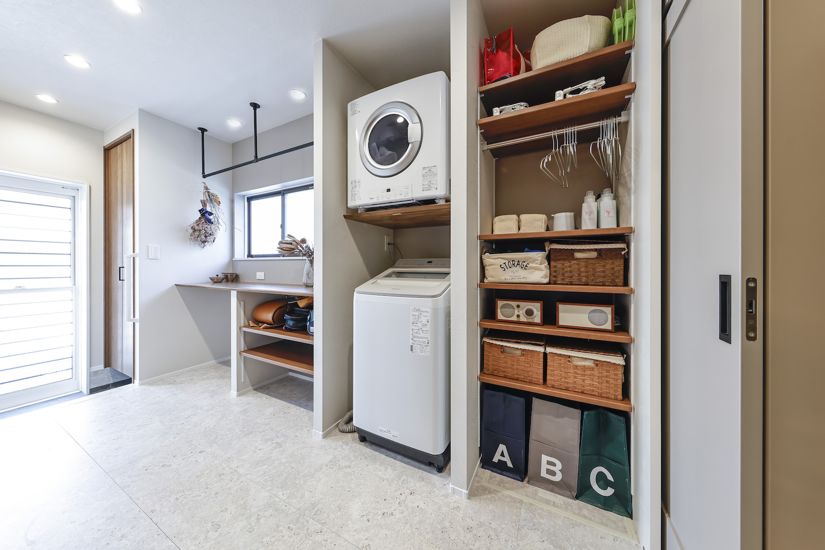 「干す・乾かす・アイロンをかける・畳む」までの一連の作業が一カ所で完結する、理想の動線を実現しました。