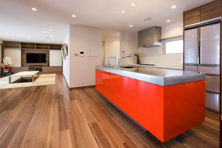 【事例12】インテリアの主役になる赤いアイランドキッチン