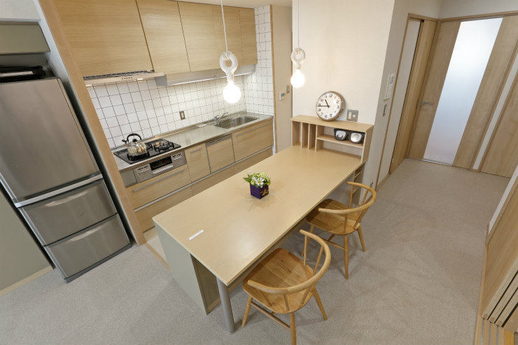 【事例2】ダイニングテーブルとの組み合わせで動線が便利な壁付けキッチン