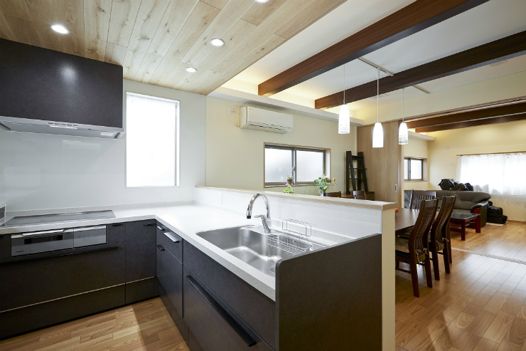 【事例8】リビングダイニングを見渡せる開放的なペニンシュラキッチン