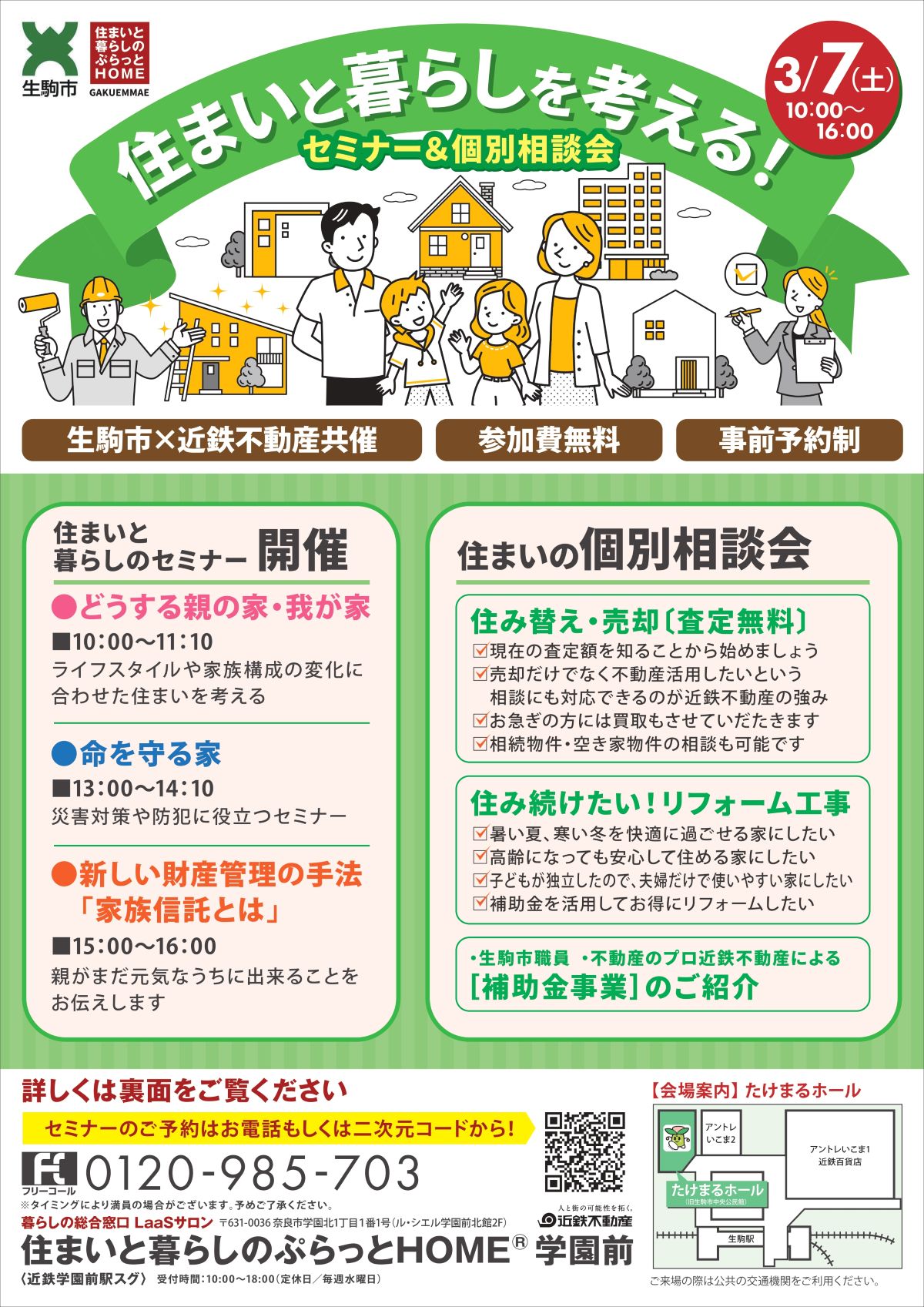 近鉄リフォームTOP イベント・キャンペーンのご案内 住まいと暮らしを考える!セミナー&個別相談会 日時3月7日(土)10:00~16:00 場所たけまるホール(旧中央公民館) 地図 ライフスタイルや家族構成の変化に合わせた住まいを考えてみませんか。 生駒市にお住まいの皆さま必見! イベント開催のお知らせ 【ニューイング東生駒】フリーコール:0120-117-735〒630-0213奈良県生駒市東生駒1丁目70-1 (近鉄東生駒ビル1階) 多数の施工例等をご紹介。↓Instagramはこちらから↓ LINEで簡単!見積依頼受付中。↓友だち追加はこちらから↓