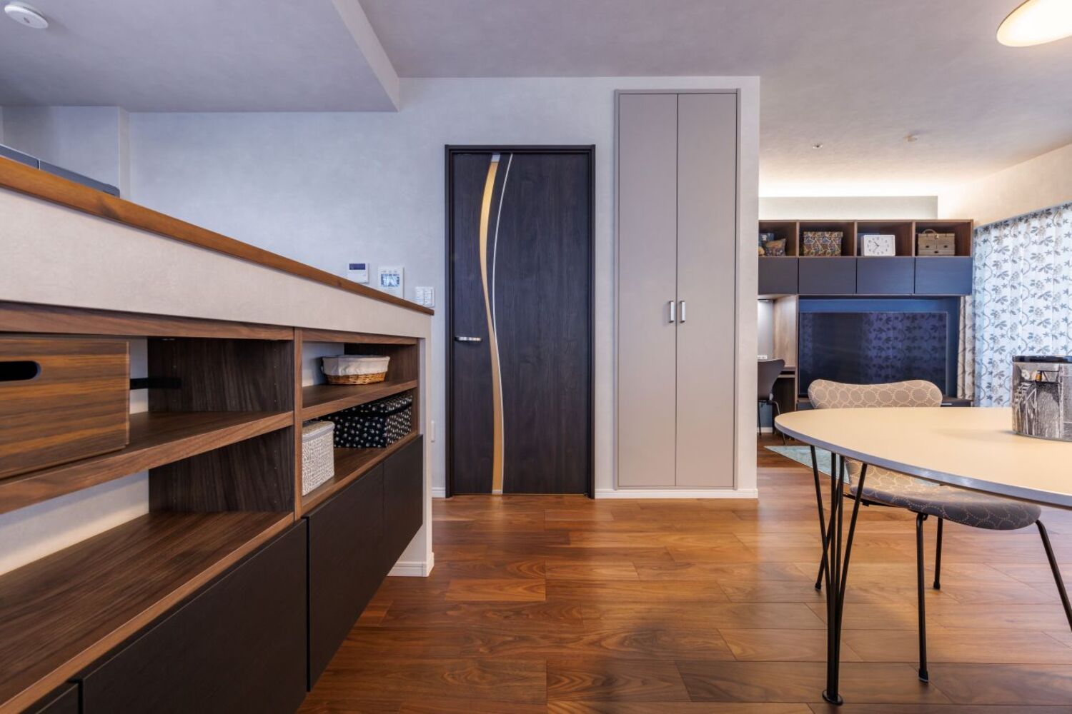 ダイニングスペースの収納にPanasonicの「キュビオス」を採用いたしました。お客様の理想とするインテリア空間の実現と、日々の暮らしをより快適にするための機能性を両立させる、こだわりの選択です。