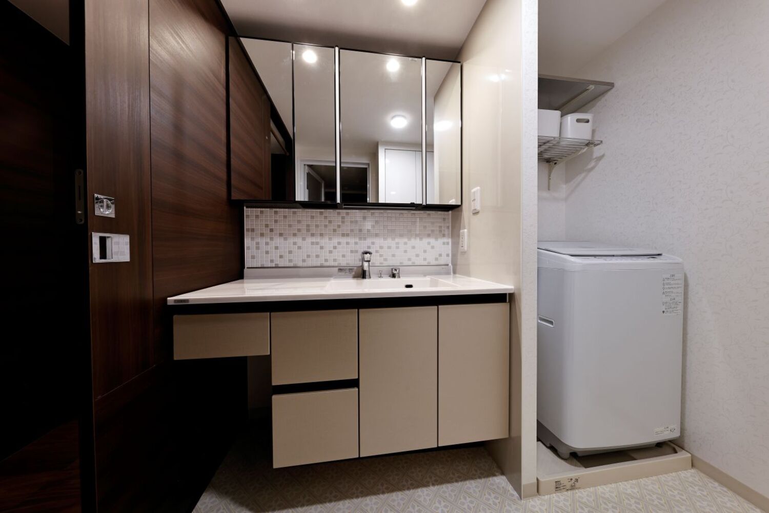 今回のリフォームでは、洗面台にLIXILの「ルミシス1200」を採用いたしました。その圧倒的な存在感と、細部にまでこだわり抜かれた機能美は、毎日の身だしなみやお手入れの時間を、より豊かで心地よいひとときへと昇華させます。